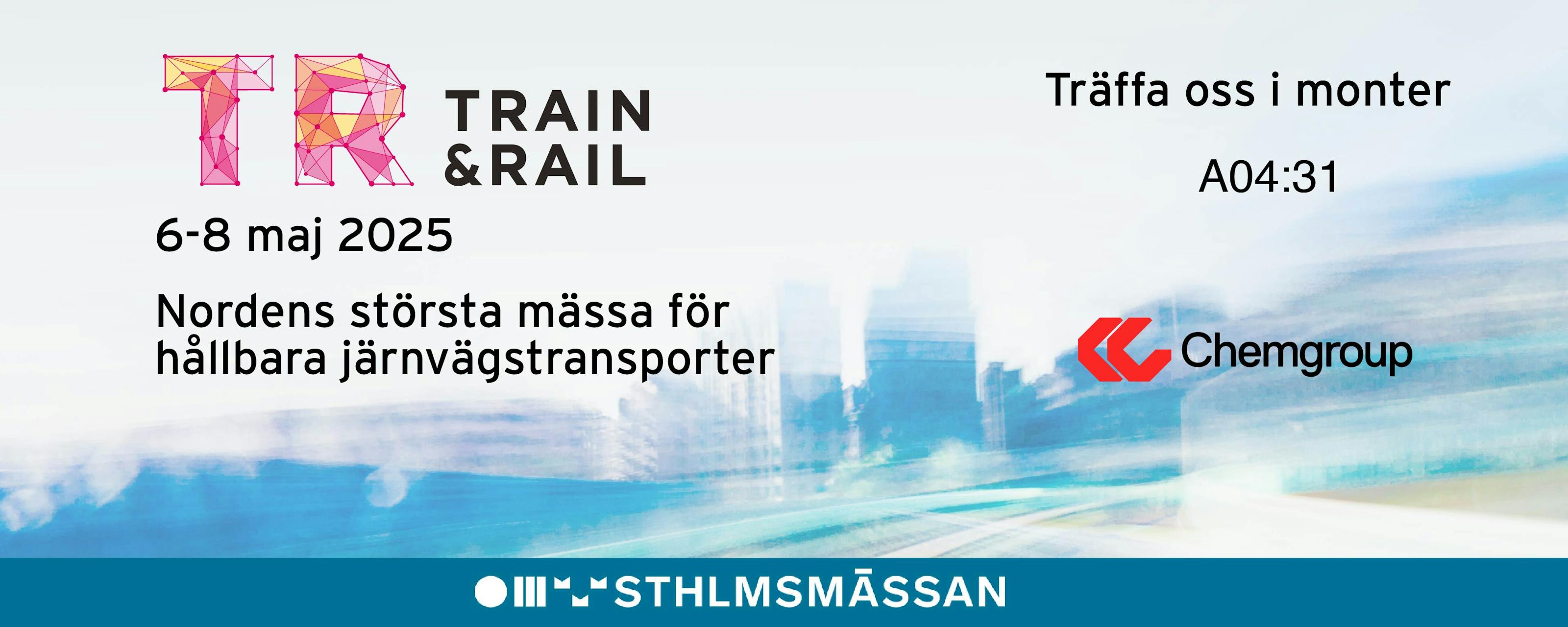 6-8 Maj 2025 äger årets train and rail mässa rum på Älvsjömässan i Stockholm. Chemgroup kommer att delta och ställa ut på mässan! Passa på att träffa oss i monter A04:31.