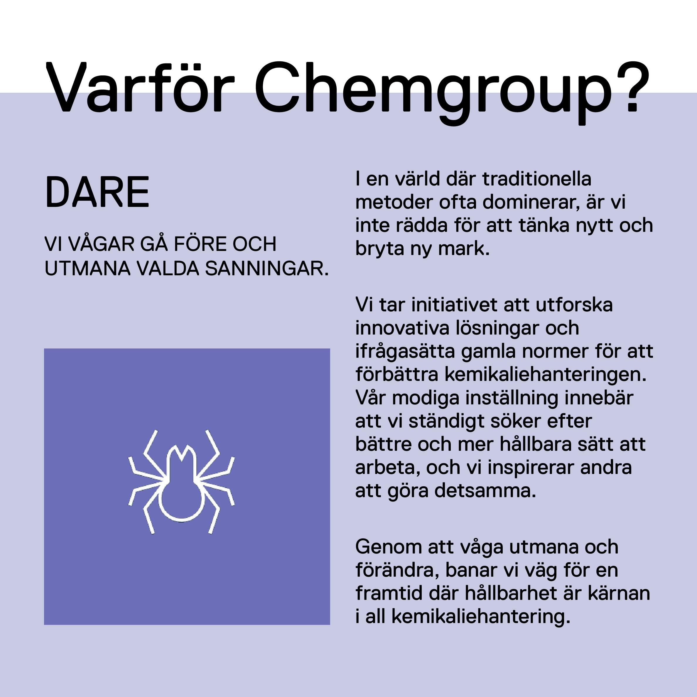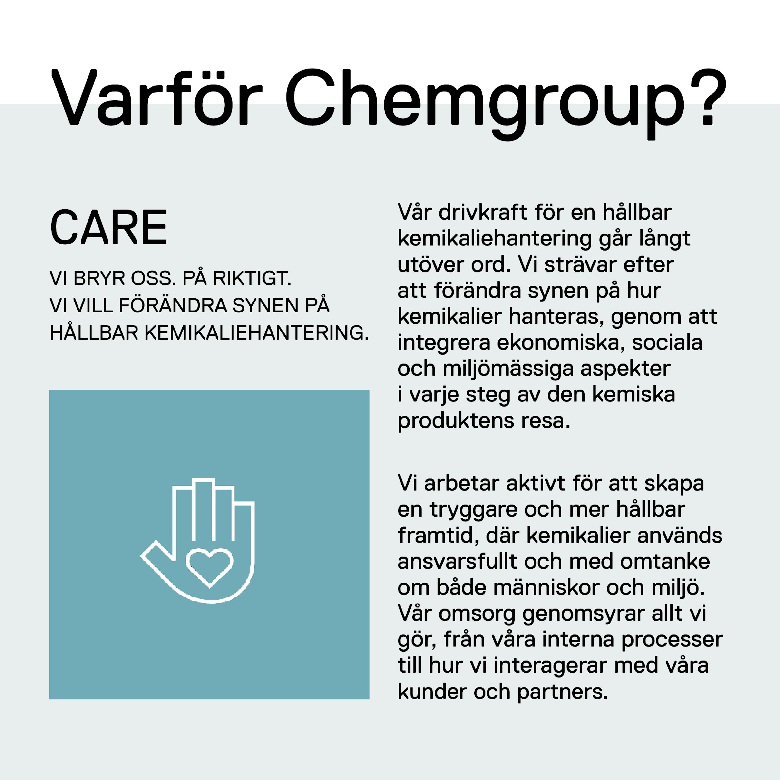 Care. Share. Dare. – det är mer än värdeord för oss på Chemgroup, det är vårt sätt att arbeta.
